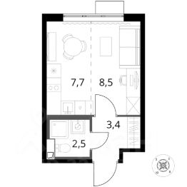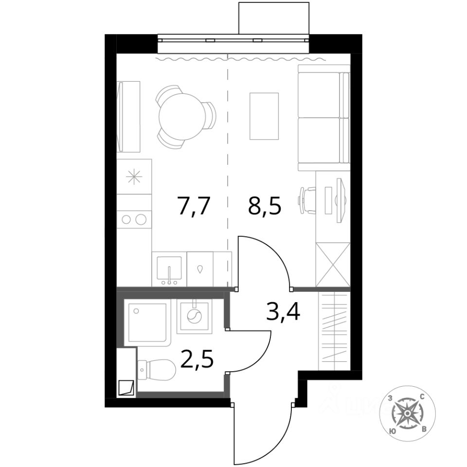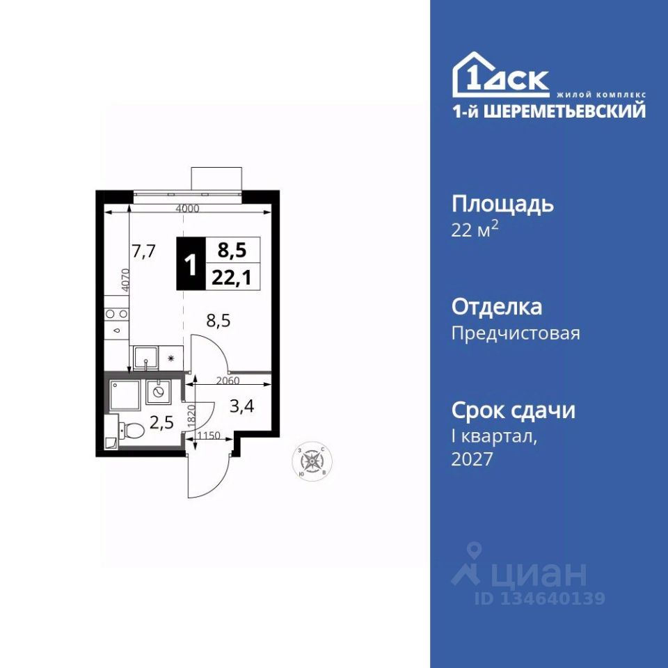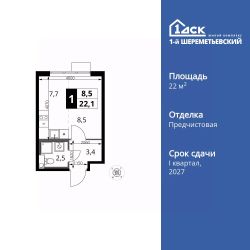 Продаётся квартира-студия номер 441 общей площадью 22.1 кв.м. на 13-м этаже 16 этажного здания. Отделка Whitebox.