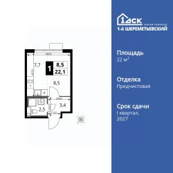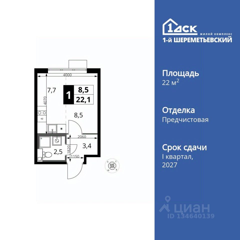 Продаётся квартира-студия номер 455 общей площадью 22.1 кв.м. на 15-м этаже 16 этажного здания. Отделка Whitebox.