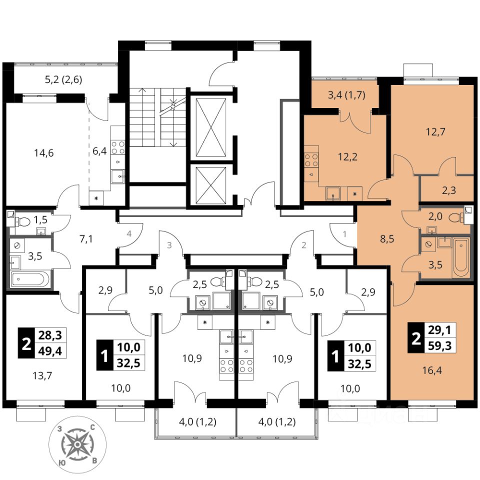Продаётся 2-к квартира номер 510 общей площадью 59.3 кв.м. на 13-м этаже 16 этажного здания. Отделка Whitebox. Цена с учётом скидки.