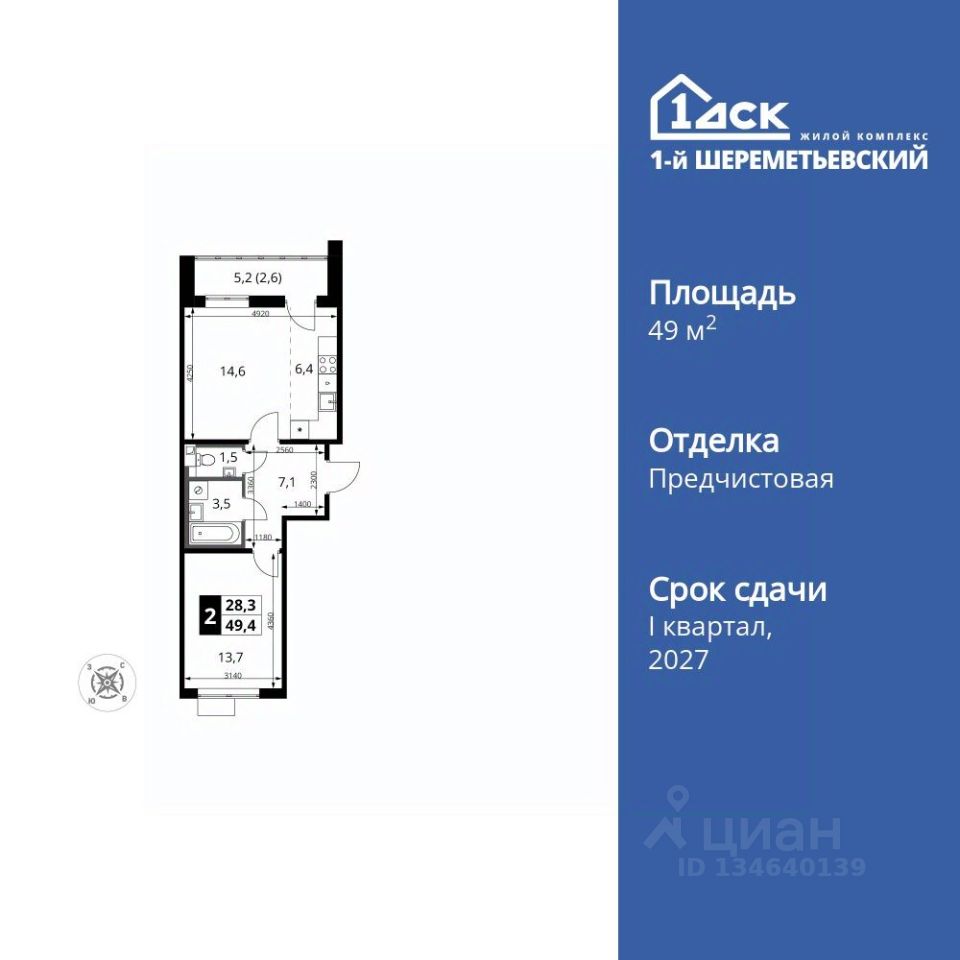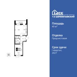 Продаётся 2-к квартира номер 513 общей площадью 49.4 кв.м. на 13-м этаже 16 этажного здания. Отделка Whitebox. Цена с учётом скидки.