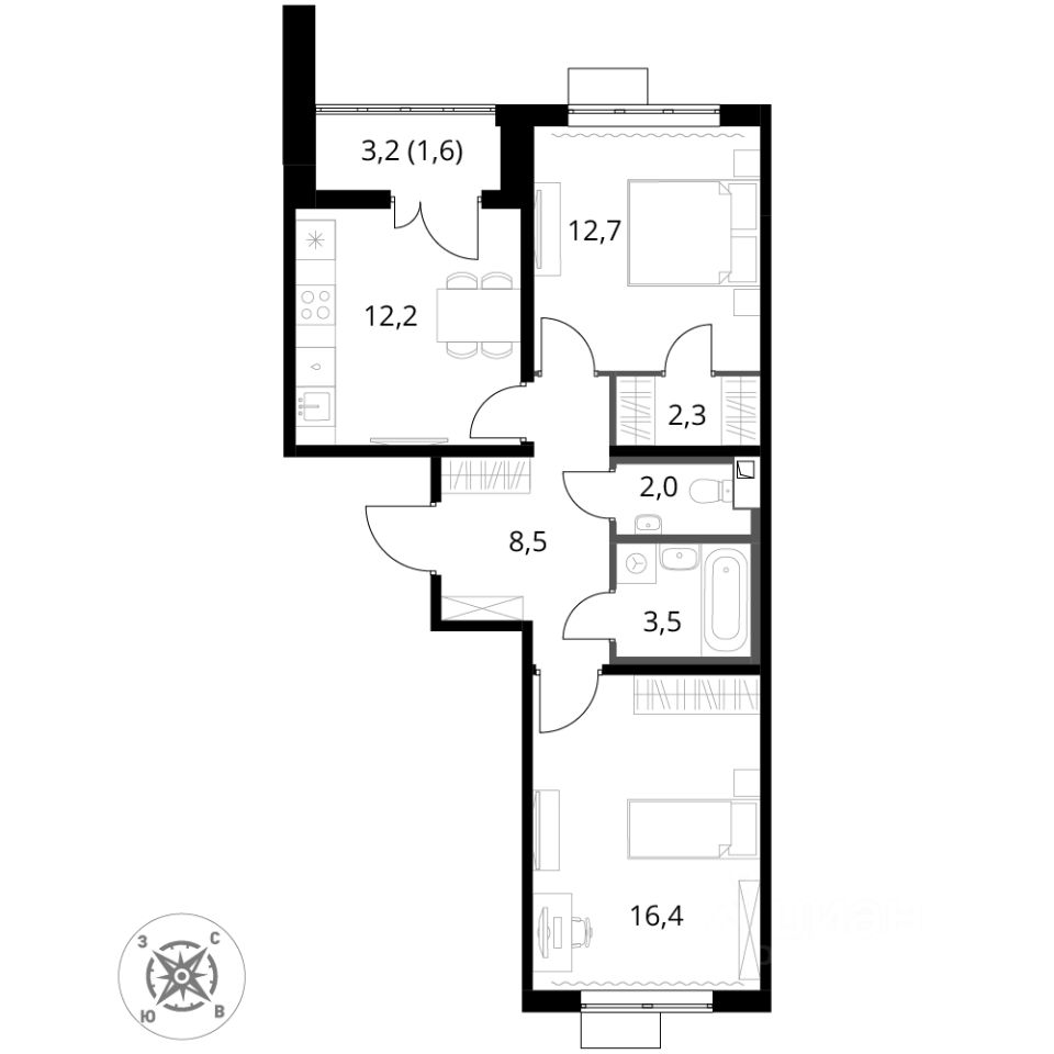 Продаётся 2-к квартира номер 514 общей площадью 59.2 кв.м. на 14-м этаже 16 этажного здания. Отделка Whitebox. Цена с учётом скидки.