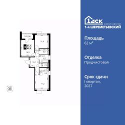 Продаётся 3-к квартира номер 650 общей площадью 62.9 кв.м. на 3-м этаже 16 этажного здания. Отделка Whitebox. Цена с учётом скидки.