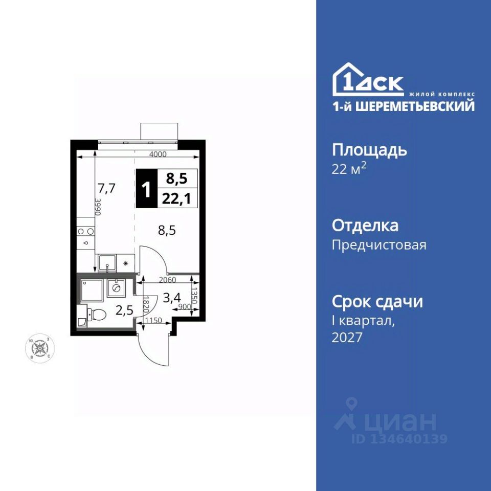 Продаётся квартира-студия номер 777 общей площадью 22.1 кв.м. на 16-м этаже 16 этажного здания. Отделка Whitebox.