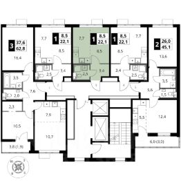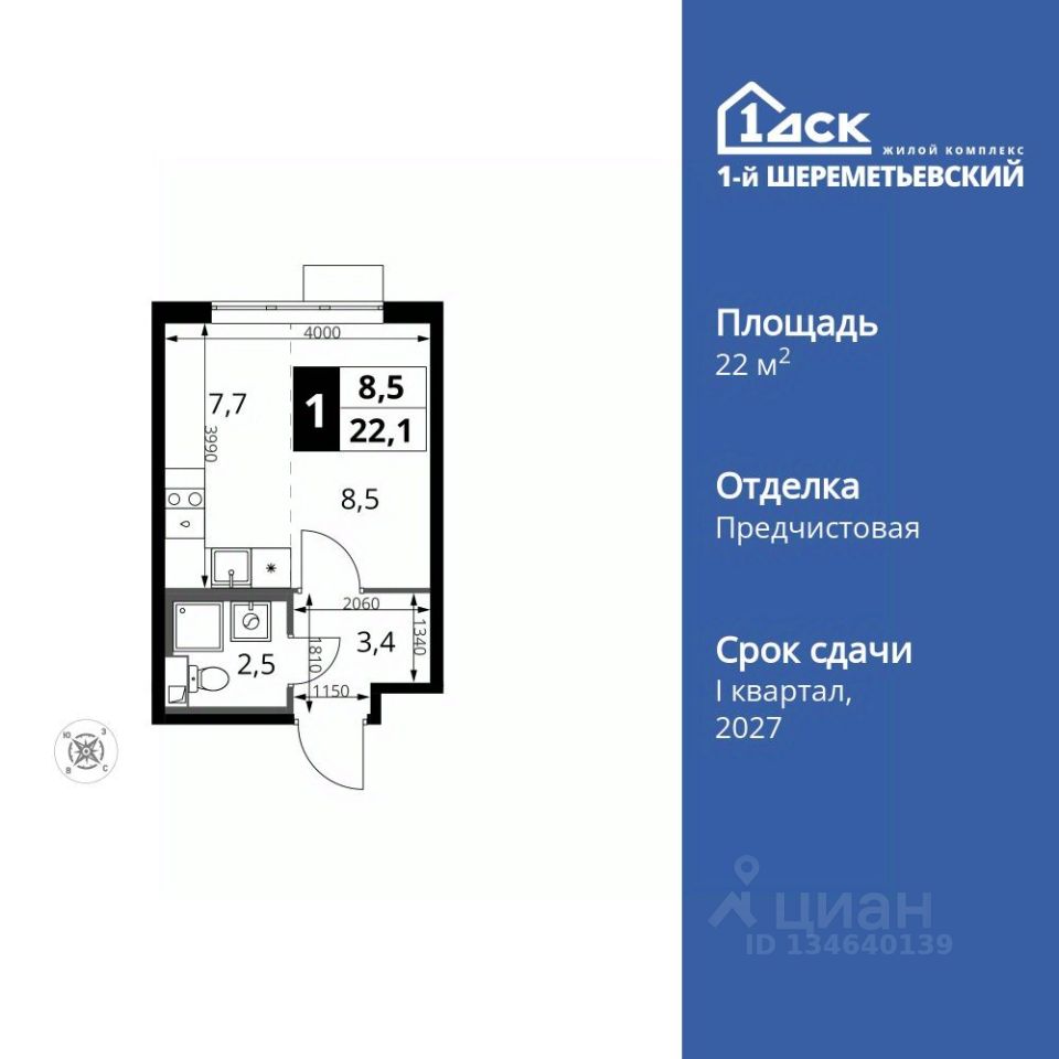 Продаётся квартира-студия номер 763 общей площадью 22.1 кв.м. на 13-м этаже 16 этажного здания. Отделка Whitebox.