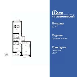 Продаётся 3-к квартира номер 766 общей площадью 62.7 кв.м. на 14-м этаже 16 этажного здания. Отделка Whitebox. Цена с учётом скидки.