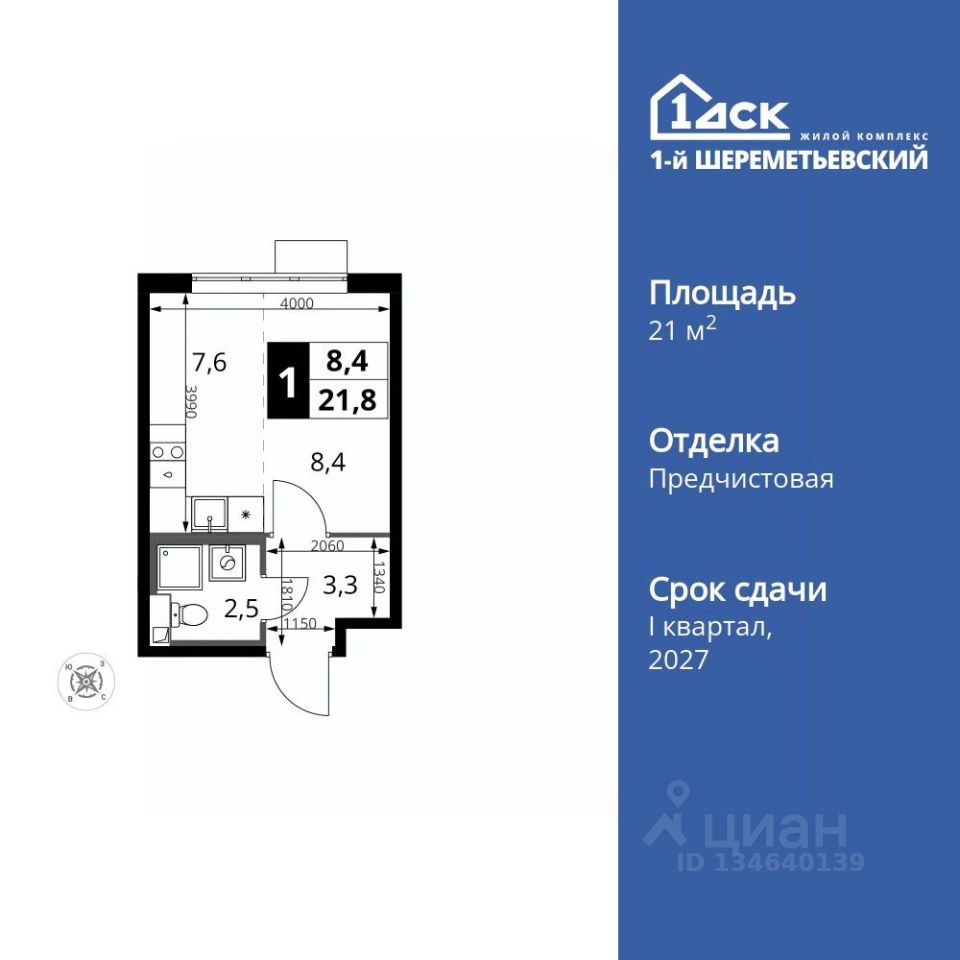 Продаётся квартира-студия номер 782 общей площадью 21.8 кв.м. на 2-м этаже 16 этажного здания. Отделка Whitebox.
