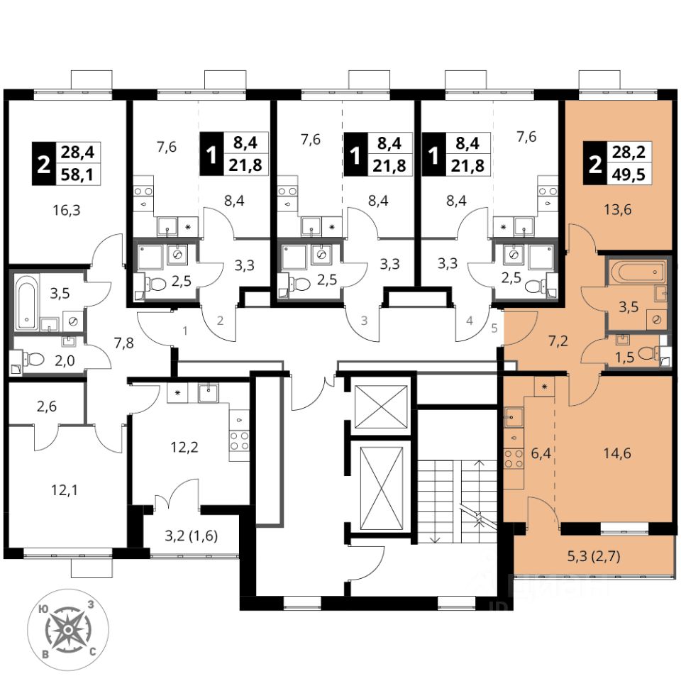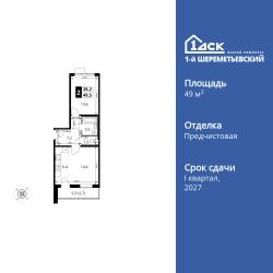 Продаётся 2-к квартира номер 795 общей площадью 49.5 кв.м. на 4-м этаже 16 этажного здания. Отделка Whitebox. Цена с учётом скидки.