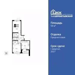 Продаётся 2-к квартира номер 801 общей площадью 58.3 кв.м. на 6-м этаже 16 этажного здания. Отделка Whitebox. Цена с учётом скидки.