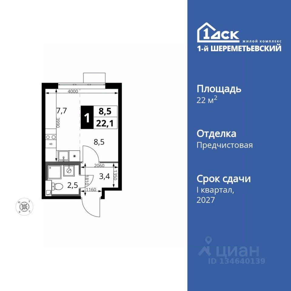 Продаётся квартира-студия номер 852 общей площадью 22.1 кв.м. на 16-м этаже 16 этажного здания. Отделка Whitebox.