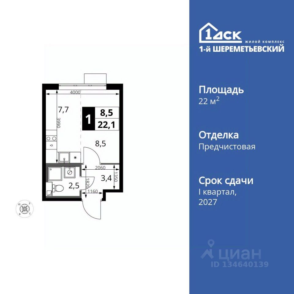 Продаётся квартира-студия номер 853 общей площадью 22.1 кв.м. на 16-м этаже 16 этажного здания. Отделка Whitebox.