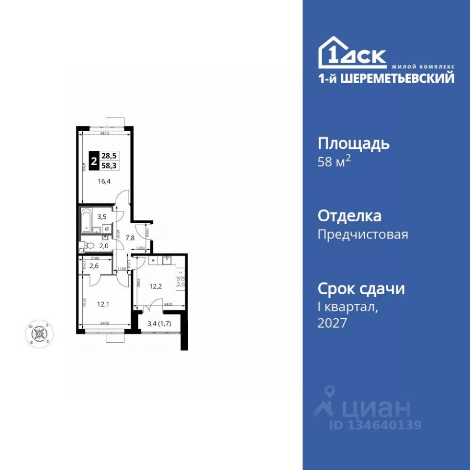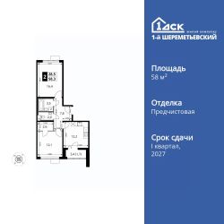 Продаётся 2-к квартира номер 836 общей площадью 58.3 кв.м. на 13-м этаже 16 этажного здания. Отделка Whitebox. Цена с учётом скидки.