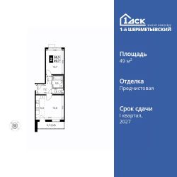 Продаётся 2-к квартира номер 840 общей площадью 49.7 кв.м. на 13-м этаже 16 этажного здания. Отделка Whitebox. Цена с учётом скидки.