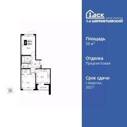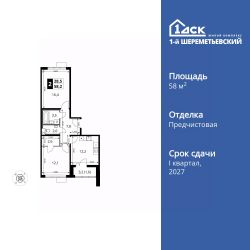 Продаётся 2-к квартира номер 841 общей площадью 58.2 кв.м. на 14-м этаже 16 этажного здания. Отделка Whitebox. Цена с учётом скидки.