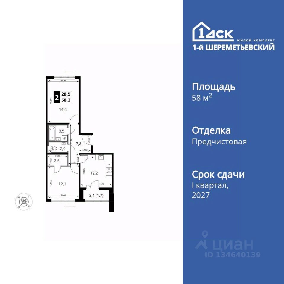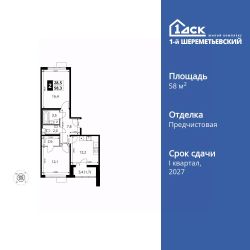 Продаётся 2-к квартира номер 846 общей площадью 58.3 кв.м. на 15-м этаже 16 этажного здания. Отделка Whitebox. Цена с учётом скидки.