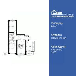 Продаётся 3-к квартира номер 94 общей площадью 84.2 кв.м. на 6-м этаже 17 этажного здания. Отделка Whitebox. Цена с учётом скидки.