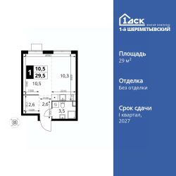 Продаётся квартира-студия номер 16 общей площадью 29.5 кв.м. на 4-м этаже 16 этажного дома. Без отделки.