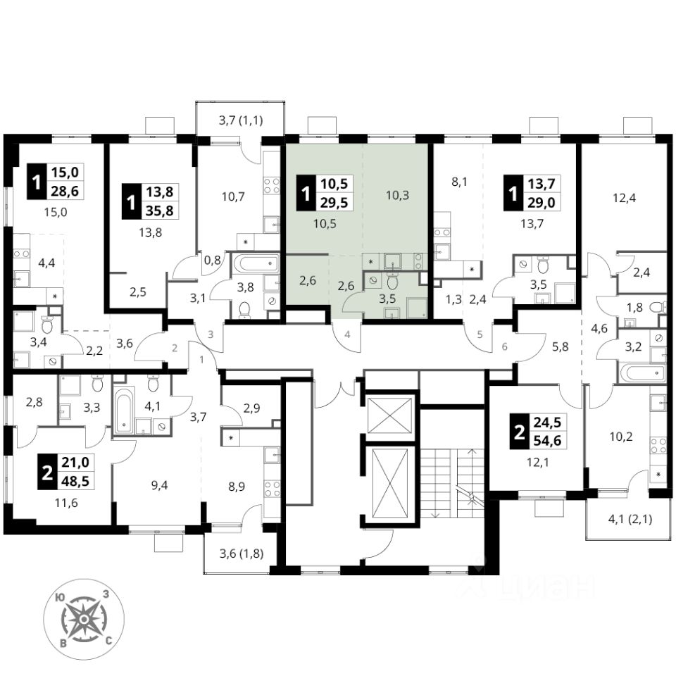 Продаётся квартира-студия номер 4 общей площадью 29.5 кв.м. на 2-м этаже 16 этажного дома. Без отделки.