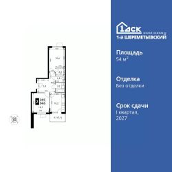 Продаётся 2-к квартира номер 30 общей площадью 54.6 кв.м. на 6-м этаже 16 этажного здания. Без отделки.