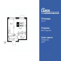 Продаётся квартира-студия номер 53 общей площадью 29 кв.м. на 10-м этаже 16 этажного здания. Без отделки.