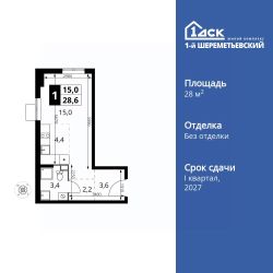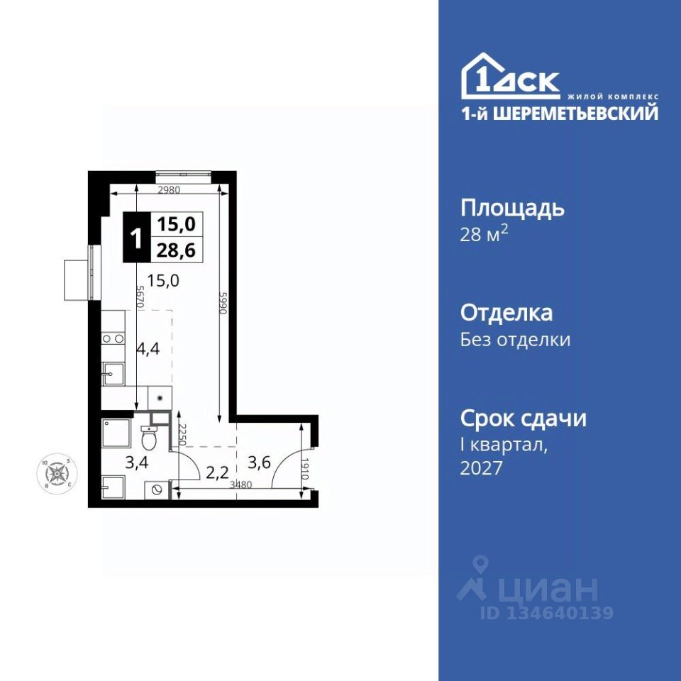 Продаётся квартира-студия номер 62 общей площадью 28.6 кв.м. на 12-м этаже 16 этажного дома. Без отделки.