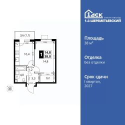 Продаётся 1-к квартира номер 790 общей площадью 38 кв.м. на 7-м этаже 17 этажного дома. Без отделки.