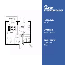 Продаётся 1-к квартира номер 873 общей площадью 35.9 кв.м. на 12-м этаже 17 этажного дома. Без отделки.