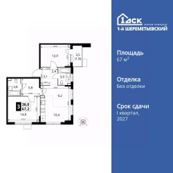 Продаётся 3-к квартира номер 945 общей площадью 67.2 кв.м. на 9-м этаже 11 этажного дома. Без отделки.