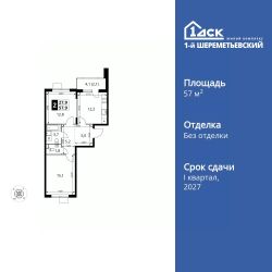 Продаётся 2-к квартира номер 1021 общей площадью 57.9 кв.м. на 15-м этаже 17 этажного здания. Без отделки.
