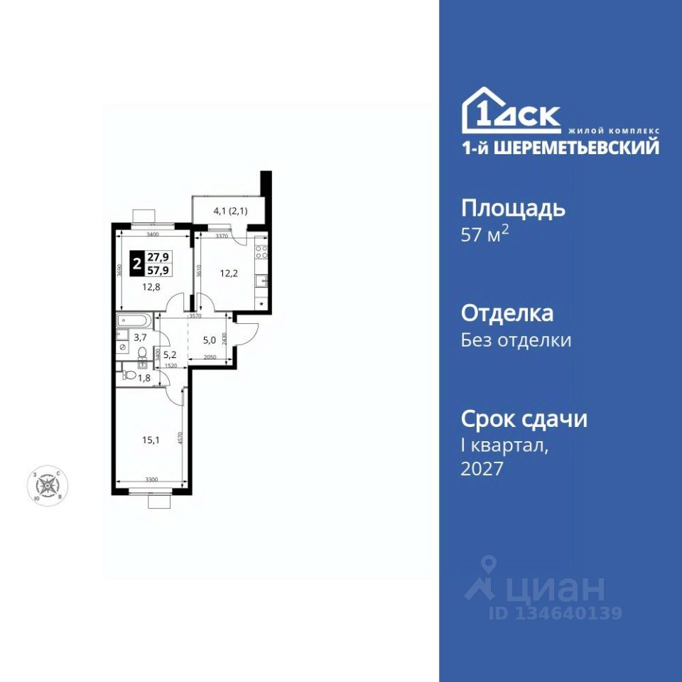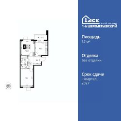 Продаётся 2-к квартира номер 1029 общей площадью 57.9 кв.м. на 17-м этаже 17 этажного здания. Без отделки.