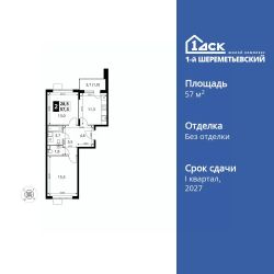 Продаётся 2-к квартира номер 1109 общей площадью 57.3 кв.м. на 17-м этаже 17 этажного здания. Без отделки.