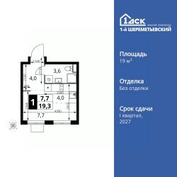 Продаётся квартира-студия номер 1082 общей площадью 19.3 кв.м. на 12-м этаже 17 этажного дома. Без отделки.