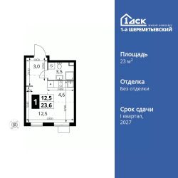 Продаётся квартира-студия номер 1321 общей площадью 23.6 кв.м. на 14-м этаже 17 этажного здания. Без отделки.
