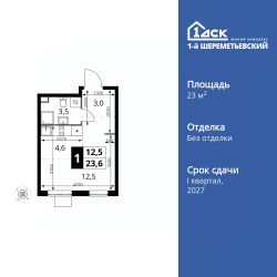 Продаётся квартира-студия номер 1322 общей площадью 23.6 кв.м. на 14-м этаже 17 этажного здания. Без отделки.