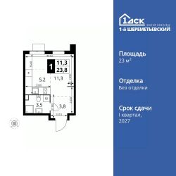 Продаётся квартира-студия номер 1329 общей площадью 23.8 кв.м. на 14-м этаже 17 этажного здания. Без отделки.