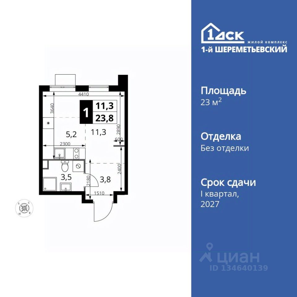 Продаётся квартира-студия номер 1353 общей площадью 23.8 кв.м. на 16-м этаже 17 этажного дома. Без отделки.
