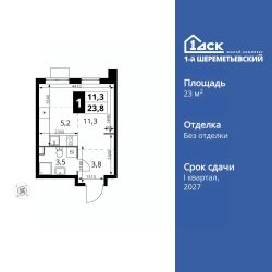 Продаётся квартира-студия номер 1365 общей площадью 23.8 кв.м. на 17-м этаже 17 этажного здания. Без отделки.