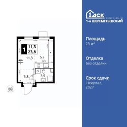 Продаётся квартира-студия номер 1256 общей площадью 23.8 кв.м. на 8-м этаже 17 этажного здания. Без отделки.