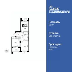 Продаётся 2-к квартира номер 213 общей площадью 60.4 кв.м. на 13-м этаже 16 этажного здания. Без отделки.