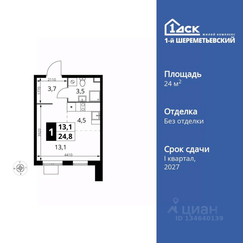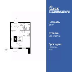 Продаётся квартира-студия номер 346 общей площадью 24.8 кв.м. на 17-м этаже 17 этажного дома. Без отделки.