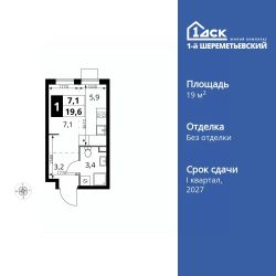 Продаётся квартира-студия номер 231 общей площадью 19.6 кв.м. на 2-м этаже 17 этажного дома. Без отделки.