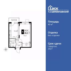 Продаётся 1-к квартира номер 376 общей площадью 40.2 кв.м. на 4-м этаже 17 этажного дома. Без отделки.