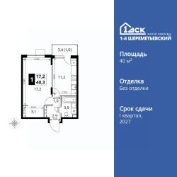 Продаётся 1-к квартира номер 383 общей площадью 40.3 кв.м. на 5-м этаже 17 этажного здания. Без отделки.