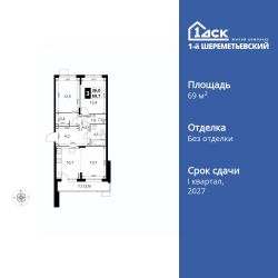 Продаётся 3-к квартира номер 485 общей площадью 69.7 кв.м. на 2-м этаже 17 этажного дома. Без отделки.
