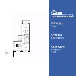 Продаётся 2-к квартира номер 685 общей площадью 59.5 кв.м. на 16-м этаже 17 этажного здания. Без отделки.