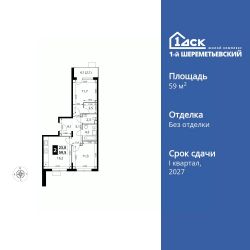 Продаётся 2-к квартира номер 653 общей площадью 59.5 кв.м. на 8-м этаже 17 этажного здания. Без отделки.
