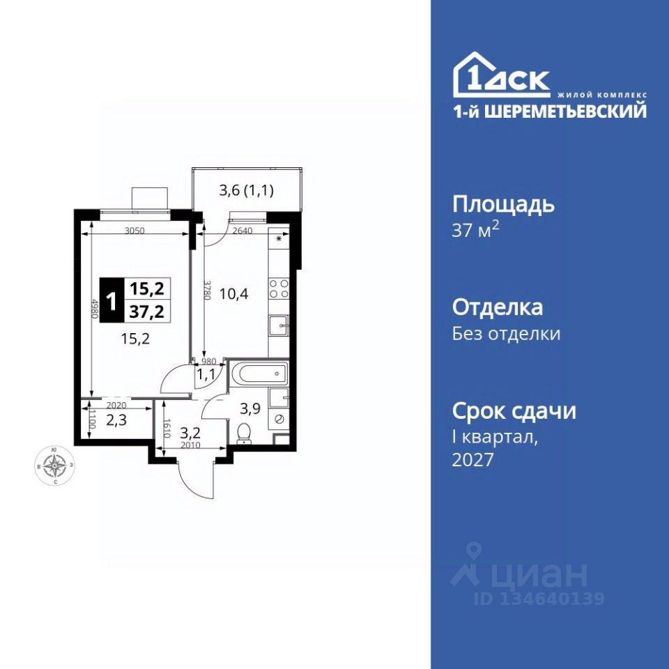 Продаётся 1-к квартира номер 660 общей площадью 37.2 кв.м. на 10-м этаже 17 этажного дома. Без отделки.