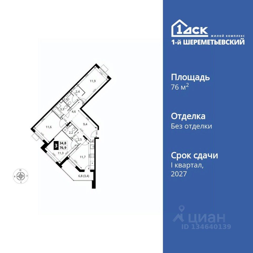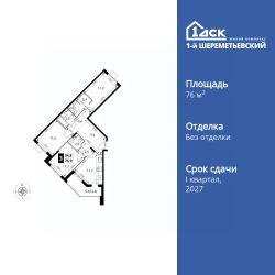 Продаётся 3-к квартира номер 666 общей площадью 76.9 кв.м. на 12-м этаже 17 этажного дома. Без отделки.