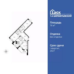 Продаётся 3-к квартира номер 666 общей площадью 76.9 кв.м. на 12-м этаже 17 этажного здания. Без отделки.