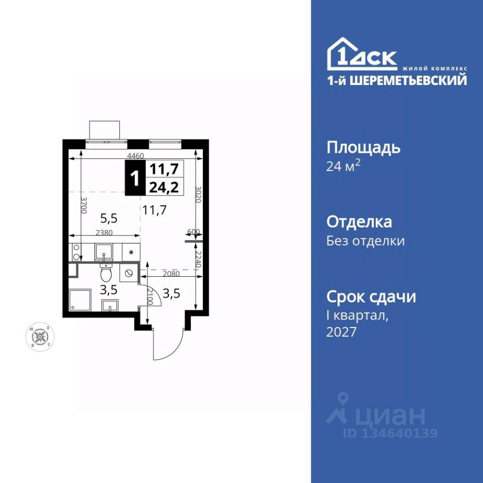 Продаётся квартира-студия номер 750 общей площадью 24.2 кв.м. на 14-м этаже 17 этажного дома. Без отделки.