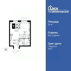 Продаётся квартира-студия номер 726 общей площадью 24.2 кв.м. на 9-м этаже 17 этажного дома. Без отделки.